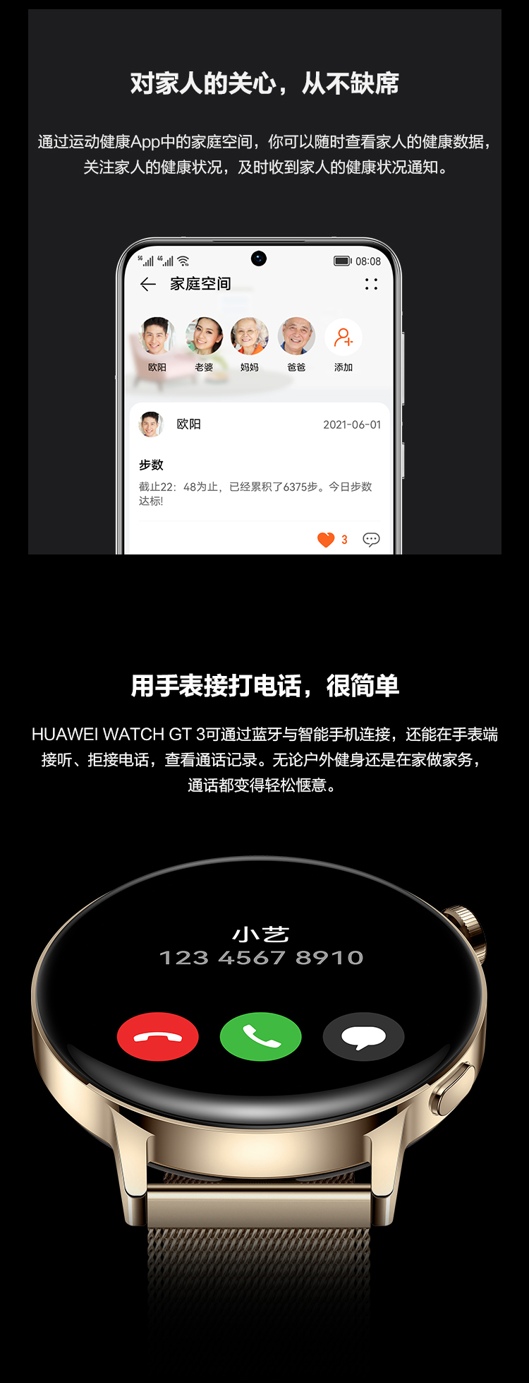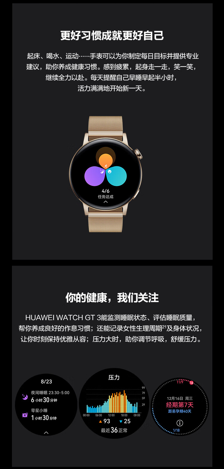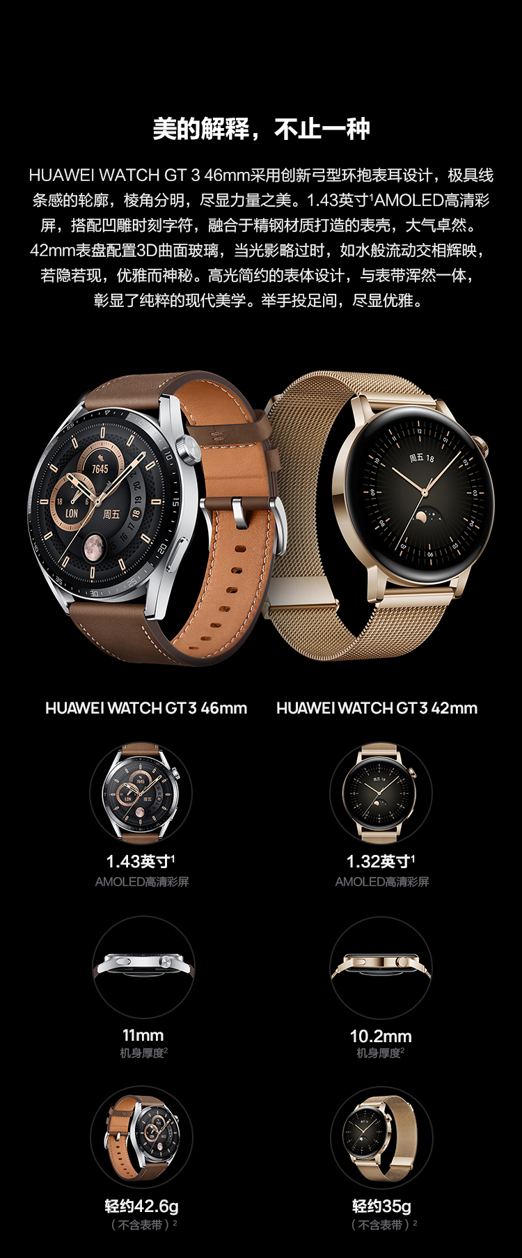 [可定制]华为HUAWEI WATCH GT3 华为手表 运动智能手表 精准心率蓝牙通话/血氧检测 雅致款 42mm